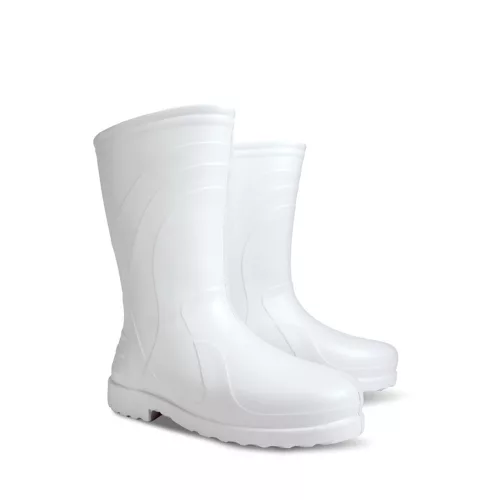 Rövid szárú pehelykönnyű EVA csizma fehér színben, kivehető - mosható béléssel, hőszigetelő hatás akár -30 °C-ig.