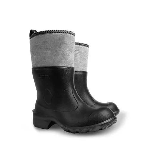 Rövid szárú pehelykönnyű EVA csizma fekete színben, kivehető - mosható béléssel, hőszigetelő hatás akár -30 °C-ig.